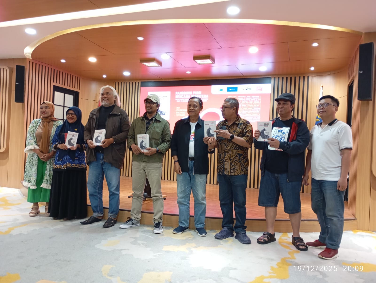 JAKARTA – Seratus delapan belas penyair pada 19 Desember 2025 di Pusat Dokumentasi Sastra HB Jassin bersama-sama melakukan peluncuran Buku Antologi Puisi berjudul ‘Tanda Cinta Bagi Korban Bencana Sumatera’ sekaligus pentas pembacaan puisi-puisi yang menyuarakan duka korban dan kritik atas keserakahan penyebab kerusakan lingkungan. Hadir perwakilan dari PDS HB Jassin Ibu Dini Dwi Utari.